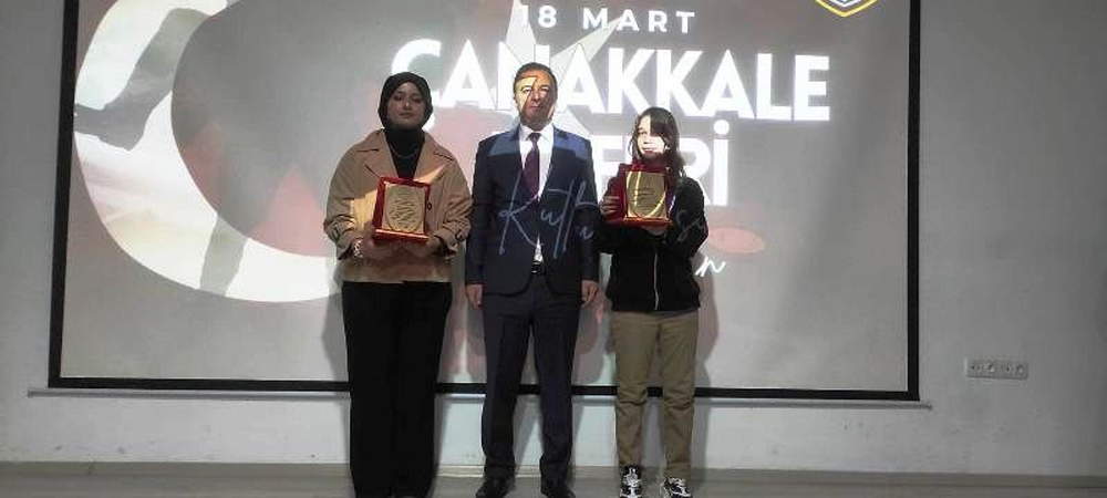 Çanakkale Deniz Zaferi temalı resim yapma ve mektup yazma yarışmasında dereceye giren ortaokul ve lise öğrencilerine ödüller verildi.