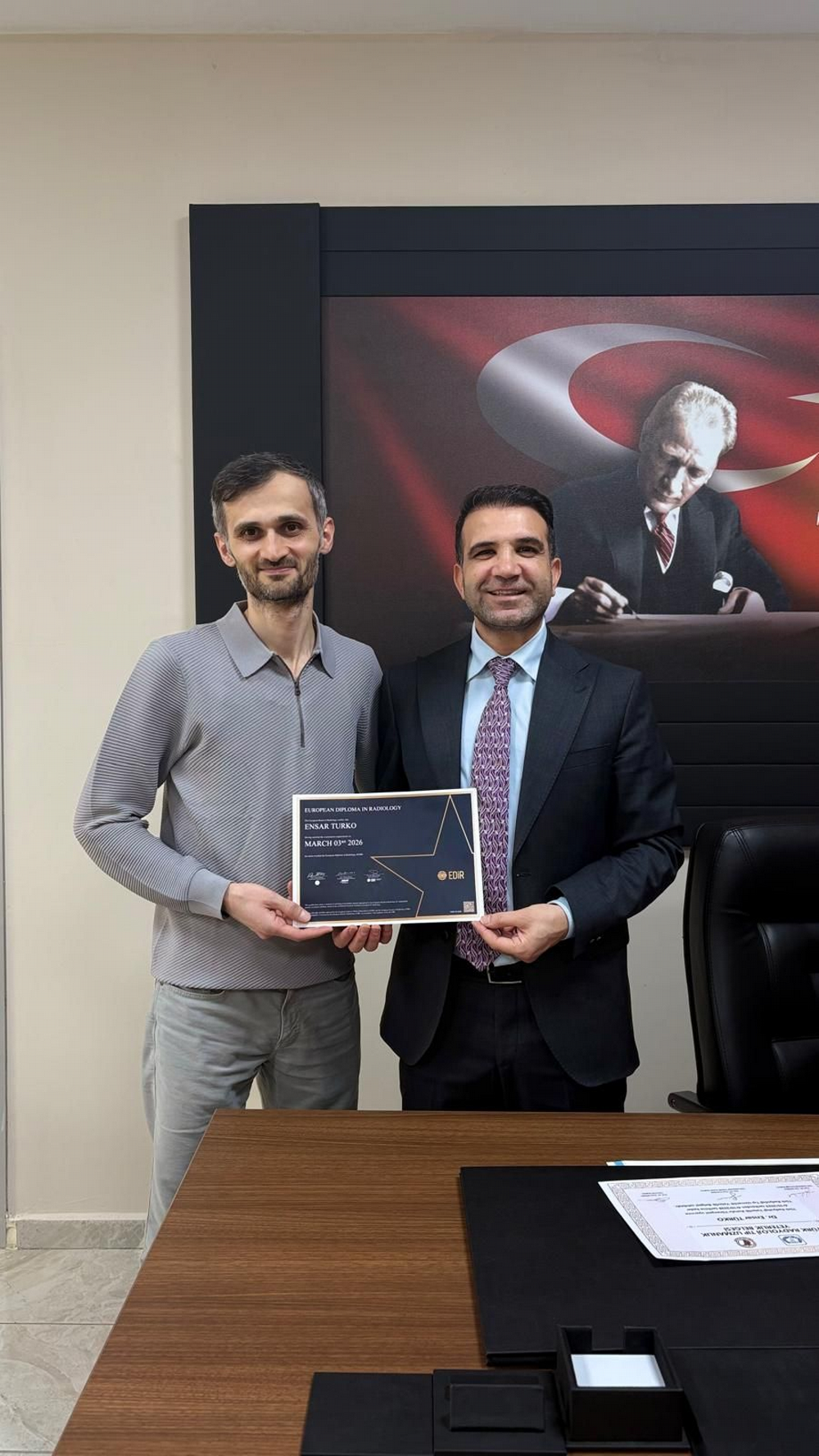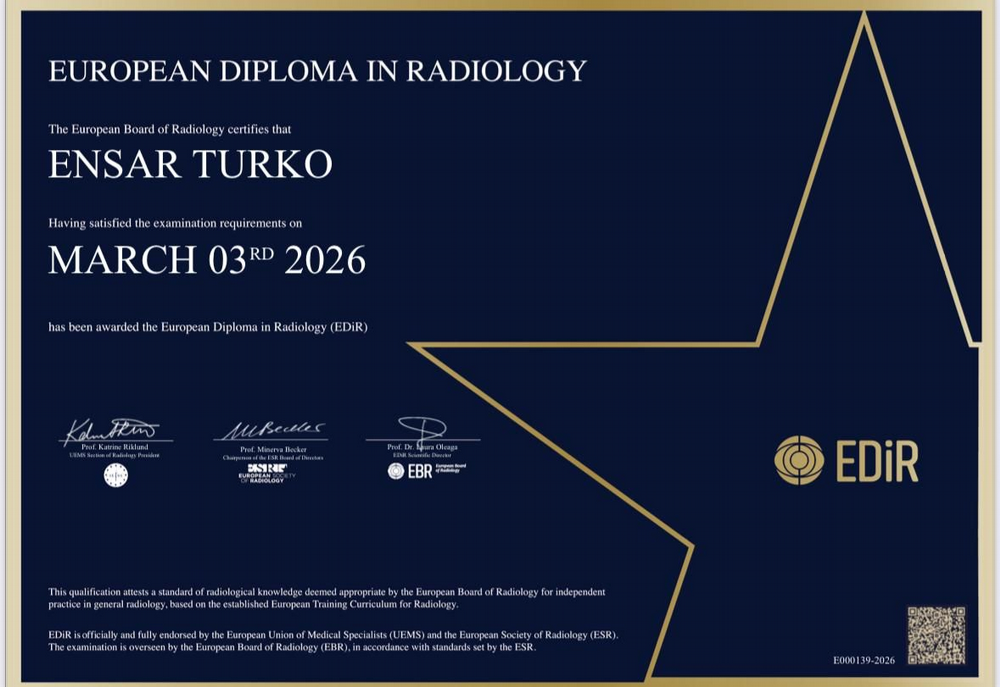 Geyve Devlet Hastanesi Radyoloji uzmanı Dr. Ensar Türko, Avrupa Radyoloji Diploması (European Diploma in Radiology - EDiR) almaya hak kazanarak önemli bir uluslararası başarıya imza attı.