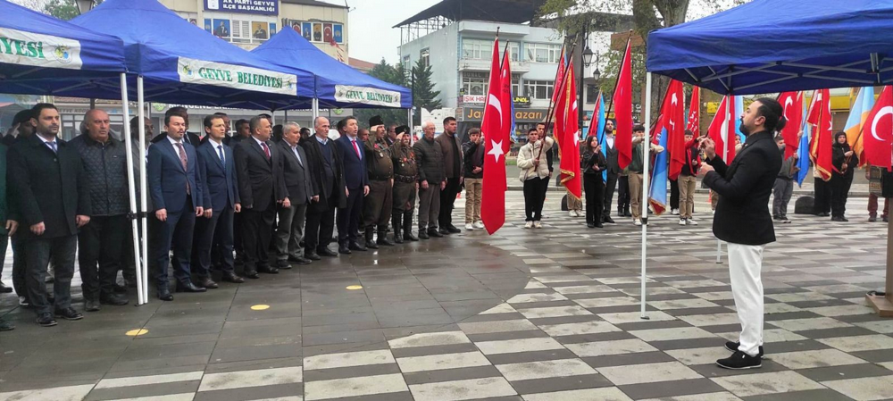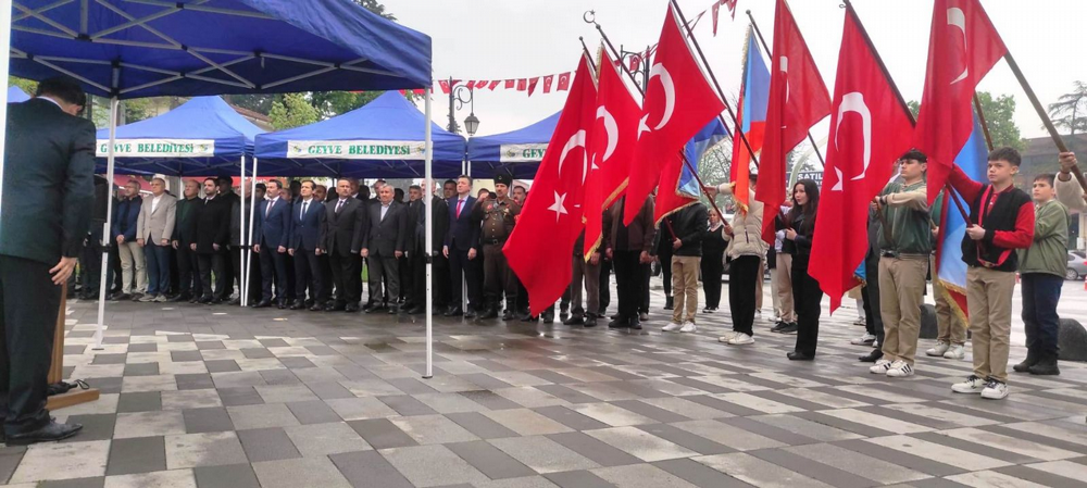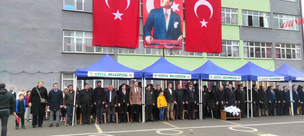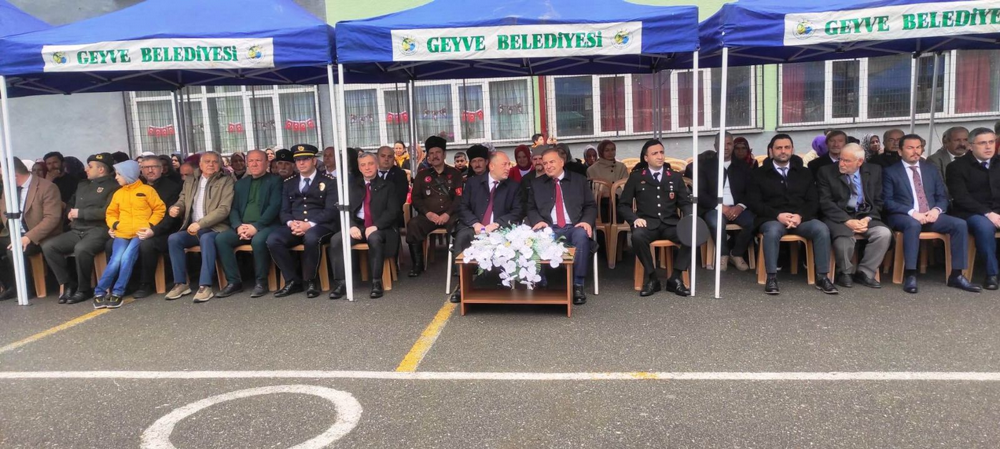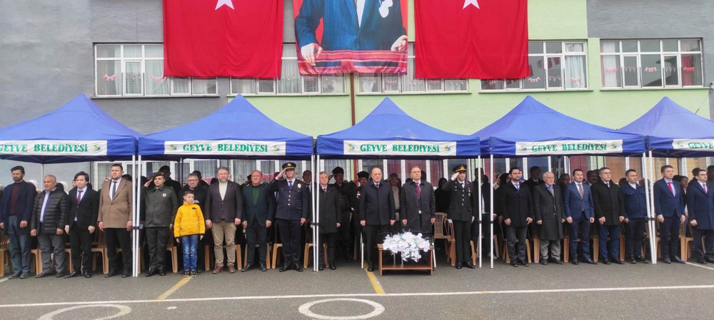 Geyve Atatürk Ortaokulunun bahçesinde düzenlenen törene ilçe kaymakamı Murat Güven, belediye başkanı Selçuk Yıldız, İlçe Milli Eğitim Müdür vekili Ahmet Özdemir, Emniyet Müdürü Serkan Duran, Jandarma Komutanı Hüseyin Akbaba, daire amirleri, okul müdürleri, öğretmenler, öğrenciler, siyasi parti temsilcileri, gaziler, muhtarlar ve çok sayıda vatandaş katıldı.