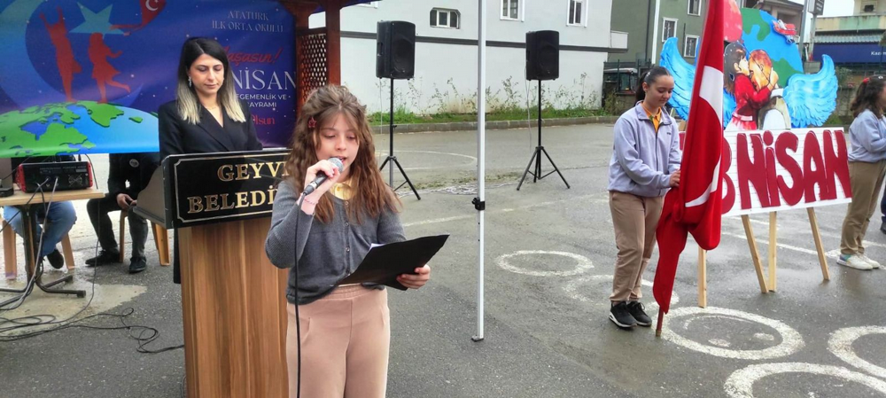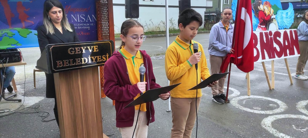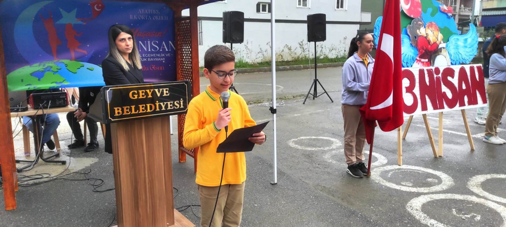 Geyve Atatürk İlk ve Ortaokulu öğrencilerinden Zeynep Ebrar Kılıç, Kaan Kasapoğlu, Elif Balcı, Ali Kemal Şentürk, Beren Külte ve Muhammet Taha Doğan 23 Nisan konulu şiirlerini okudular.