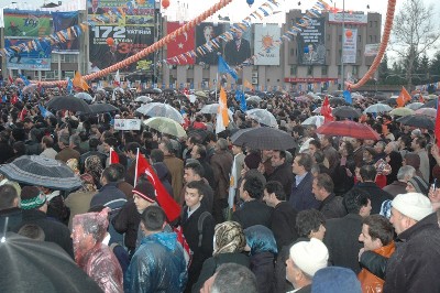 | Başbakan Recep Tayyip Erdoğan, siyasetçinin er meydanının miting alanları olduğunu belirterek, "Bana medya oy vermeyecek, milletim oy verecek. Ben milletimle sohbet ediyorum" dedi. Başbakan Erdoğan, Sakarya Kent Meydanı'nda yaptığı konuşmasına Sakaryalılar'ı en kalbi duygularıyla selamlayarak başladı. Erdoğan, "Bugün bir kez daha sevignize, heyecanınıza, coşkunuza ortak oluyorum. Ne zaman Sakarya'ya gelsem huzur buluyorum, mesut oluyorum" dedi. Necip Fazıl'ın 'Sakarya' şiirinden bir bölüm okuyan Başbakan Erdoğan, "81 vilayetimize bu ruhla, bu anlaşıyla, bu felsefeyle yaklaşıyoruz. 6 yıldır Andolu'yu, Trakya'yı geziyorum. Hepsine ayağa kalkın diyorum. Tüm şehirlerimizi kalkındırma mücadelesi veriyoruz. Büyük düşünüyor, emin adımlarla güçlü bir şekilde ilerliyoruz. 81 vilayetimizin hepsinde bütün kalbimizle haykırıyoruz. Sen Türkiyesin, sen Sakaryasın. Sakarya'yı bu şekilde Türkiye'nin farklı bir özeti olarak kucaklıyoruz. Bizim tarihimizin, kültürümüzün özeti. Barışın, dostluğun, kardeşliğin şehri. Sakarya, Türkiye'nin tüm renklerini, huzur, barış, kardeşlik içinde paylaşmış bir şehir. Sakarya'ya gelnnce Anadolu'yu teneffüs ediyorum. Kırcaali'yi, Gümülcüne'yi Saraybosna'yı, Tiflisi, Grozni'yi teneffüs ediyorum. Bu ülke tek vücut halinde 'Çanakkale geçilmez' dedi. Doğusundan batısına, kuzeyinden güneyine her yerde şehitler verdi. Aynı bayrağın gölgesinde istikbalimiz için gayret gösterdik. Bu milletin topraklarını, tarihini okumayan, bunu bilmez. Kim bu topraklara nifak tohumu serpiştirmeye kalkışırsa yanılır. Kim dostluğumuzu zedelemeye kalkarsu bu millet ona en sert cevabı verir, tokadı atar. Burada bir kez daha tekrarlıyorum kimse bu ülkenin, bu milletin başını öne eğemez. Benim vatandaşım kendisini hıorlanmış hissedemez. Bu ülkeye hiç kimse ülkelerden bir ülke muamelesi yapamaz. Bu milletin herhangi bir ferdine karşı sesini yükselterek konuşamaz. Geçmişte kimi liderler bunu sineye çekmiş olabilir. Karşılarında el pençe divan durmuş olabilir. Başka liderlerin karşısında bu şekilde tavır takınmış olabilir. Bu ülkeyi geçmişte zilletin eşiğine getirmiş olanlar olabilir ama bunlar geride kaldı. 6 yıl boyunca aldatan ve aldanan olmayacağız dedik. Sakarya'yı mahcup etmeyeceğiz dedim. Aldatan da aldanan da olmadık. Mahcup olmadık. Seçime 36 gün kaldı. Çoğu gitti azı kaldı" dedi. Sakarya'yı seçimden seçime hatırlayanlardan olmadıklarını belirten Erdoğan, "Miting yapamayan, buralarda konuşamayan siyasetçilerden değiliz. Baykal şunu söylüyor: 'Başbakan diyor niçin Diyarbakır'a gidiyor. Orayı karıştırmaya gidiyor'. Böyle siyasetçi olur mu? Ne demek sen bir genel başkan olacaksın kullandığın ifadeye bak. Sen de gideceksin. Başbakan'ın güvenlik güçleri varmış. Sayın Baykal Başbakan için ne tedbir alınıyorsa senin için de almaya hazırız. Bu bizim görevimiz. Aynı imkanlar aynı tedbirler onlar için de alınır. Ama kalkıp bunu da siyaset malzemesi yapma. Sen Sivas'tan öteye kaç kere gittin. Dün Aksaray'daydım. Bugün Sakaryada'yız yarın Diyarbakır öbür gün Kahramanmaraş, Adıyaman. 780 bin kilmetrekarenin tamamında AK Parti olarak varız. İnşallah ben 66 vilayete gideceğim. Kalan vilayetlere de arkadaşlarım gidecek. Diğerlerine de genel başkan yardımcısı arkadaylarım gidecek. Diğer siyasetçiler nerede onları halkın içinde gördünüz mü? Baykal 'Başbakan çıksın medyada konuşsun' diyor. Bana medya oy vermeyecek, milletim oy verecek. Ben milletimle sohbet ediyorum. Yeri geldiği zaman televizyonlara da çıkar yine görüşmelerimi yaparım. Ama siyasetçinin er meydanı burası. Hodri meydan. Burada birleştirilmiş kıtalar yok, burada Sakarya var. Ankara'da otur çamur siyaseti, iftira siyaseti yap. Medya üzerinden halkla iletişim kurmaya çalış. Medyadan kılavuz olmaz dedik. Dediğimiz doğru çıktı mı? Üzerinde oturdukları çamurun üzerine bastılar mı? Çamurun içinde debelenmeye başladılar. 17 Ağustos'ta Sakarya'da deprem oldu. Ankara'da bunlar enkaz altında kaldı. Sakarya o dönemleri unutmadı. Millete söyleyecek sözleri yok. Böyle siyaset olur mu? Çık milletle konuş. Gel halkın arasına gir niye girmiyorsun. Çetenin, mafyanın, karanlık güç odaklarının avukatlığını yaparak muhalefet olur mu? Vergi kaçıranların avukatlığını, sözcülüğünü yaparak muhalefet olur mu? Cumhurbaşkanı seçeceğiz, hayır seçemezsin. Yasa çıkaracağız çıkaramazsın. Belediyeler burs verecek hayır veremezsin. Türkiye'yi büyüteceğiz büyütemezsin. Çeteyle mücadele edeceğiz, hayır edemezsin. Bir kere de milletin adına bir şey böyle" dedi. 41 tesisin Hendek'te açılışını yaptıklarını kaydeden Erdoğan, "Hendek Belediye Başkanımız'ın hizmetlerini halkımızla buluşturduk. Sakarya Valiliği'nin resmi açılışını yaptık. Yeni Sakaryaya'yı da yerinde görme fırsatını bulduk. 21. yüzyılda artık şehirler üzerinde rekabet var. Sakarya'yı küresel rekabete hazırlıyoruz. Aziz Duran Sakarya için çok önemli hizmetler üretti. Bizim için Sakarya çok önemli. 6 yılda 1854 dersliği tamamladık. 6 yılda 6804 bilgisayar gönderdik. Sakarya Üniversitesi bünyesinde tıp fakültesi hizmete girdi. Tekno kent kurulumu çalışmaları devam ediyor. Bu yılın yatırım programında bin kişilik yurt yapımı var. toplam kapasite 4492'ye çıkacak. Artık okullar açılırken kitapları sıraların üstünde buluyorsunuz. CHP ne dedi. fakire veriyorsunuz ama zengine niye veriyorsunuz dedi. Ben de dedim ki öğrencinin fakiri zengini olmaz. Biz emanetçiyiz. Halkımın emanetçisiyiz. Biz hortumculara değil halkımıza veriyoruz". Erdoğan konuşmasını şöyle sürdürdü: "Fındık konusu sürekli gündeme geliyor. Toprak Mahsulleri Ofisi (TMO) 362 bin ton fındık aldı. 85