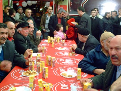 Gelen davetlilere kuru pasta ve meyve suyu ikram edildi.