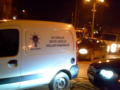 AK Parti İlçe Teşkilatı son konvoyunu çarşı içindeki seçim bürosu önünden başlatıp Geyve'yi dolaştıktan sonra yine seçim bürosu önünde son buldu.
