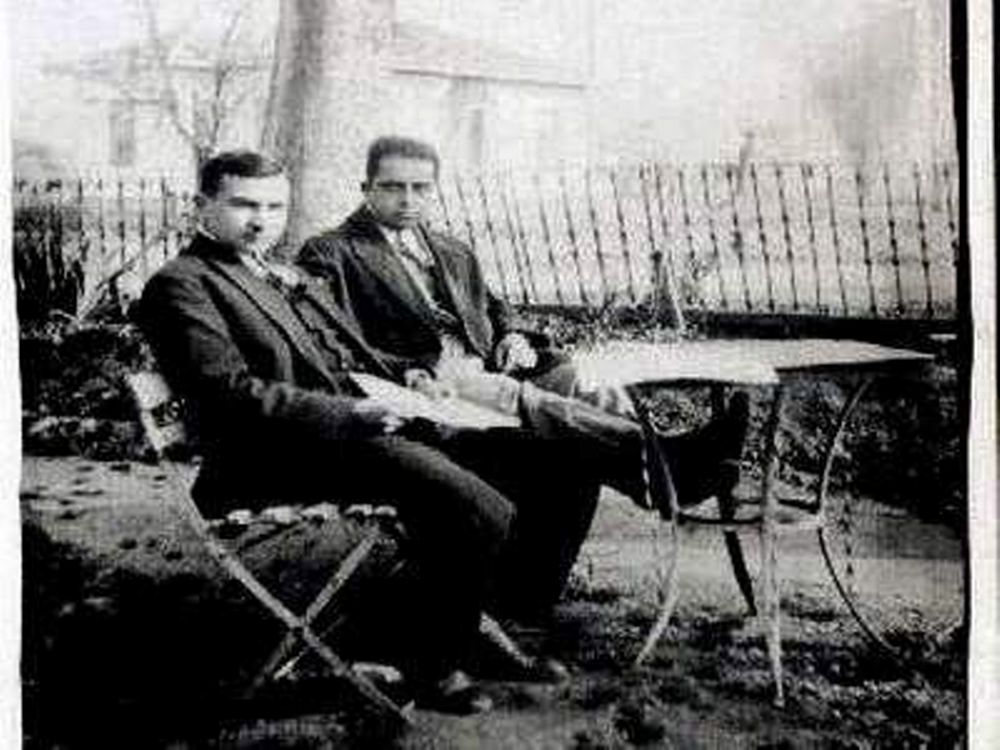 Geyve'den bir görünüm. Yıl 1931. Hükümet bahçesinin önünde iki kişi.