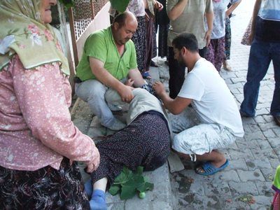Komşuları tarafından olay yerine çağırılan 112 Acil Ekibi tarafından Geyve Devlet Hastanesine kaldırılan E.K. nin başındaki yaraya müdahale edildi, röntgeni çekildi.
