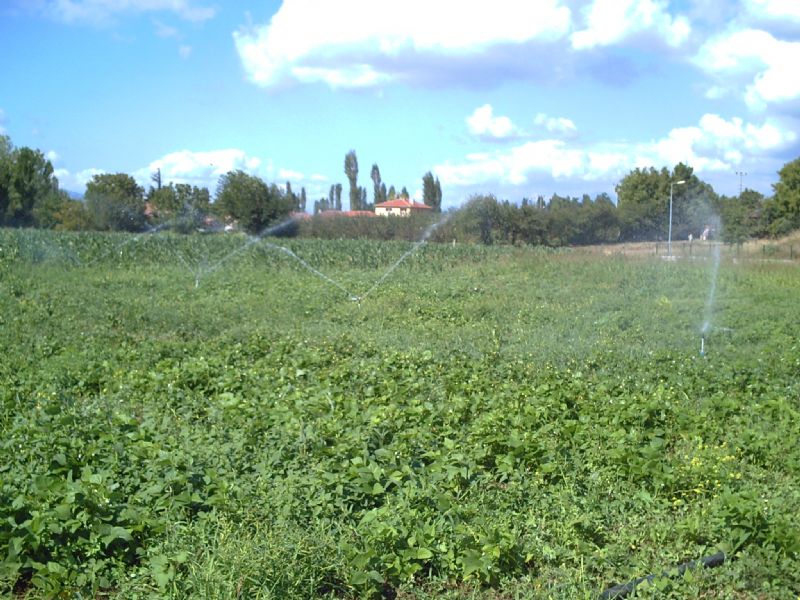 Kendi imkânlarımızla yaptığımız kuyudan elektrik motoru ile su çekip 650–700 metre mesafeye su basarak yağmurlama sistemi ile sulama yapıyoruz.