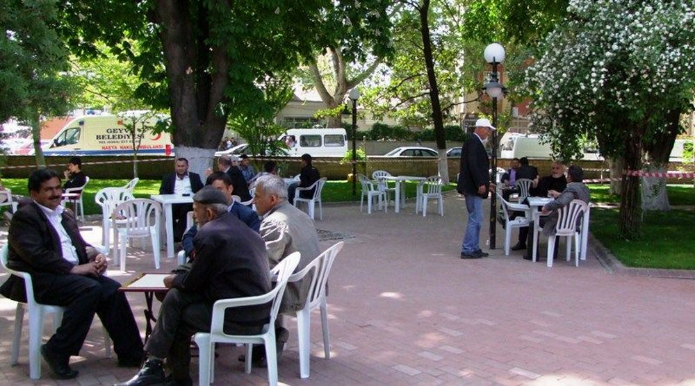 10 lar ca yıldır Geyvelilere serin gölgesinde yer veren parkrta çay içip sohbet etmek, vaz geçilemez bir keyiftir.