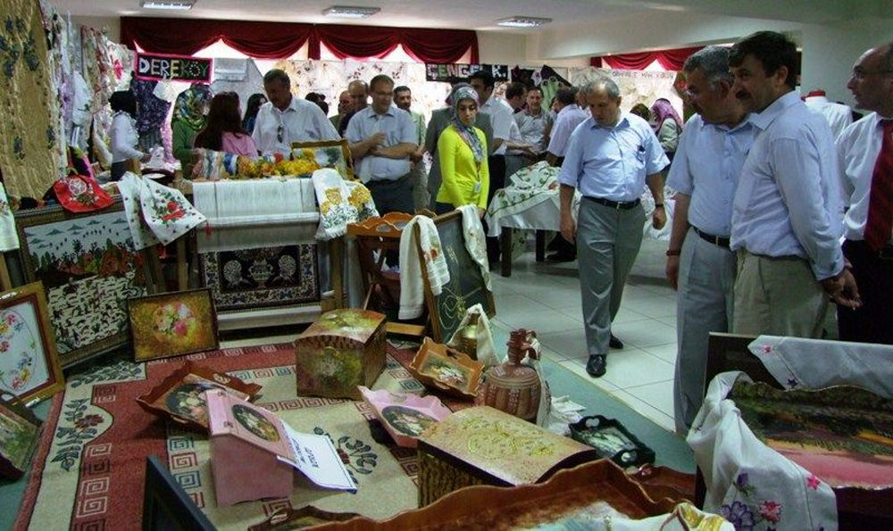 Giyim Teknolojisi Alanı Kursları, Anne Çocuk Eğitimi, İpek Halı, El Sanatları Alanı, Ebru kursları kursiyerlerinin işlerinden oluşan serginin açılış kurdelesini, İlçe Kaymakamı Süleyman Erdoğan hayırlı olsun dilekleri ile kesti.