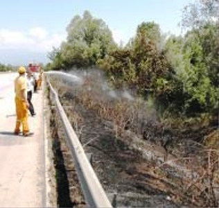 Afrika sıcaklarının etkisi altında kalan Sakarya'da TEM Otoyolu kenarında çıkan örtü yangınları tehlikeye neden oluyor. Çıkan yangınlar yoldan geçen sürücüleri tedirgin ediyor. TEM Otoyolu Gebeş mevkiinde çıkan örtü yangını Adapazarı Büyükşehir Belediyesi itfaiye ekipleri tarafından söndürüldü. Son günlerde artan örtü yangınlarına araçlardan atılan sigara izmaritlerinin neden olduğu belirtildi. Yetkililerin sürücüleri uyararak, gelişi güzel sigara izmariti ve boş şişe atmamalarını istediler. #