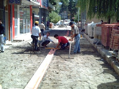 Geyve' de çarşı içinde sokakalar yeni çehresine kavuzuyor.Çarşı içinde elektrik kablolarının yer altına alınması çalışmaları yanında daha önce sokaklara döşnen parkeler söklüp yenileri döşeniyor.
