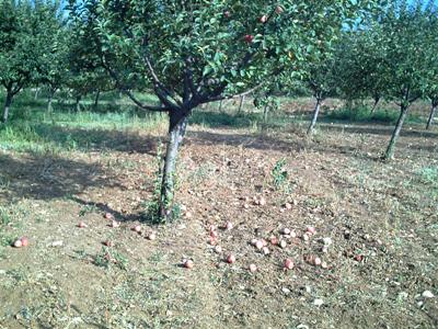 Elmaların erken olgunlaşıp yere dökülmesi Geyve'li üreticiyi düşündürüyor.