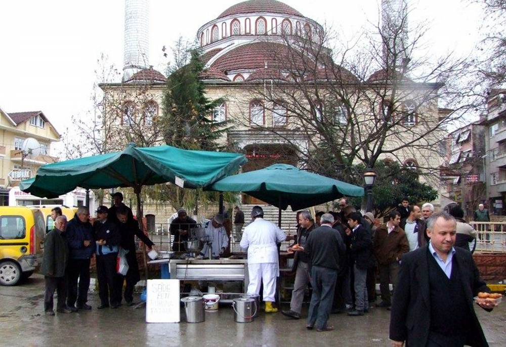 Oğulları Yusuf Peti ve Sonay Peti, annelerinin ruhuna Merkez Sinan Bey Camii önünde lokma dağıttı.