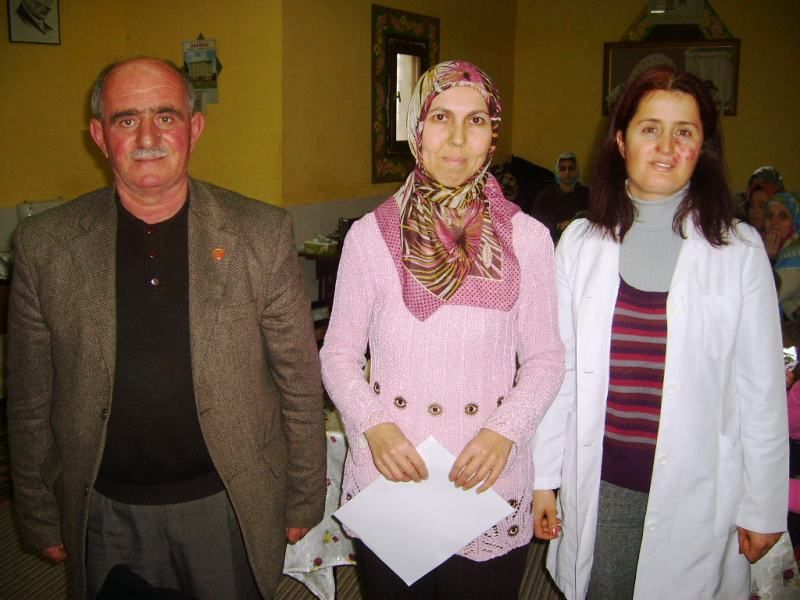 Filiz Yenisu’ya belgesi Karaçam Köyü Muhtarı Kazım Mercan tarafından takdim edildi.