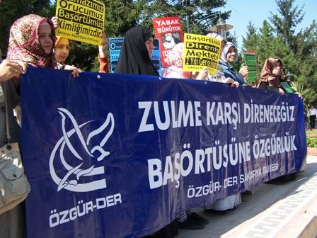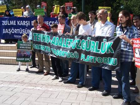 “Zulme Karşı Direneceğiz – Başörtüsüne Özgürlük” ve “Tevhid – Adalet - Özgürlük” yazılı pankartlar taşıyan platform mensupları, eylem boyunca “Halkın Onuru, Bozacak Oyunu” ve “Zulme Karşı Direneceğiz” sloganlarını attılar. Eylemde “Namazımız, Orucumuz, Başörtümüz Kimliğimizdir”, “Örtüne, İnancına, Kimliğine Sahip Çık” ve “Yasak Sürüyor, (D)uyuyormusunuz” yazılı dövizler de taşındı.