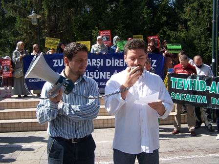 Basın açıklaması Sakarya Başörtüsü Platformu adına Özgür-Der Sakarya Şube Başkanı Kadrican Mendi tarafından  okundu. Egemenlerin; yıllardır yürüttükleri halkın inanç ve değerlerine yönelik baskı politikalarının istedikleri sonucu vermediğini, şimdi farklı kavram ve söylemlerle son kozlarını oynadıklarını belirten Mendi “28 Şubat ile azgınlaştırılan İslam’ın sosyal hayattan silinip atılması politikası, yapılan tüm baskılara rağmen tutmayıp halkın İslam’a olan ilgi ve teveccühünün artması, içlerindeki kin ve nefretin İslam’la nihai hesaplaşma boyutuna vardıracak kadar gözlerini kararttığı anlaşılıyor.”ifadelerine yer verdi.