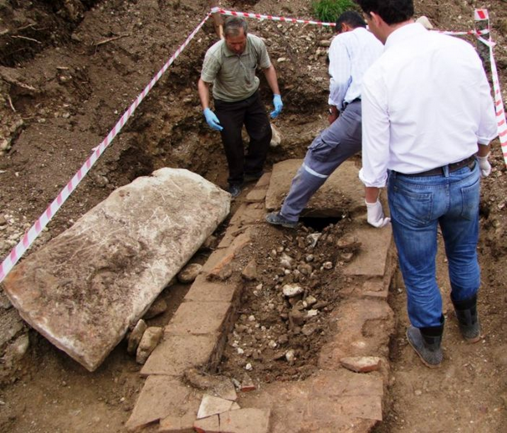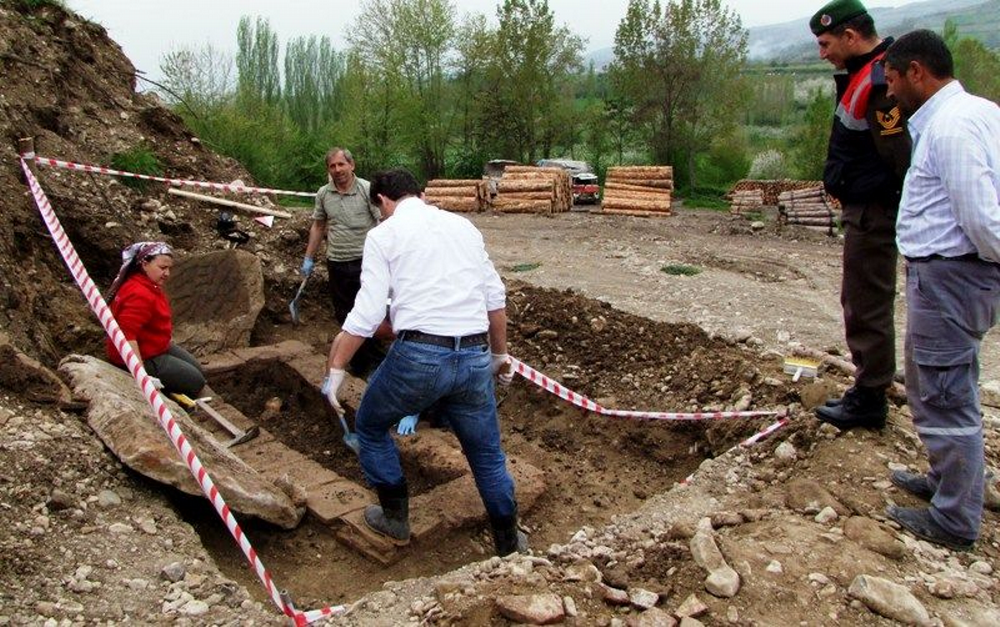 ‘Kültür Bakanlığından gelen izin üzerine kurtarma kazısı yapıyoruz. Kurtarma kazısı; mezar mimarisi ve ölü gömme geleneği konularının tespiti demektir. Bulunan mezarın M.S.500-700 dönemine ait bir Roma Mezarı olduğunu tahmin ediyoruz. Mezar 1.20 X 2.80 boyutunda ve 40 cm. civarında derinliğe sahip. Mezarın içinde 3 kişiye ait odlunu tahmin ettiğimiz iskelet kalıntılarını bulduk. Gerekli incelemelerin yapılabilmesi için kemik örneklerini alarak mezarı kapatacağız. Bizlere yardımlarını esirgemeyen İşletme Müdürü sayım Kurtbal’a, Belediye Başkanı Sayın Kaya’ya ve Garnizon Komutanı Sayın Varol’a şükranlarımızı sunarız.’