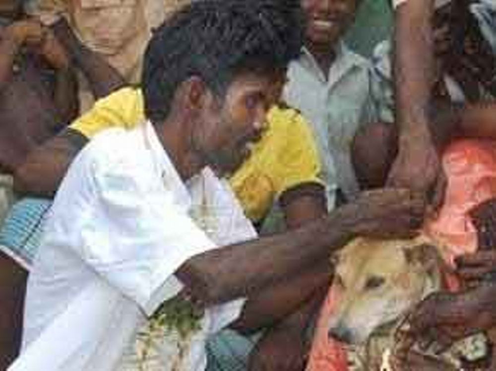 Hindistan'da lanetlendiğine inanan bir adam, laneti üstünden atmak için dişi bir köpekle "dünyaevine girdi."
