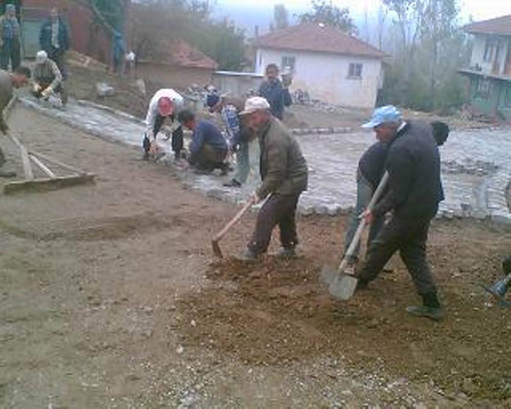 Çine Köy halkı imece usulü sokaklara kilitli parkeyi kendileri döşüyor.