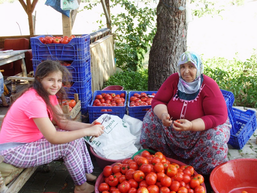 Bayanlar özellikle kış aylarında yiyecekleri biber, patlıcanları kurutmaya başlarken, hava sıcaklarından yararlanarak evlerde domates salçasının yapımlarına da hız verdi.