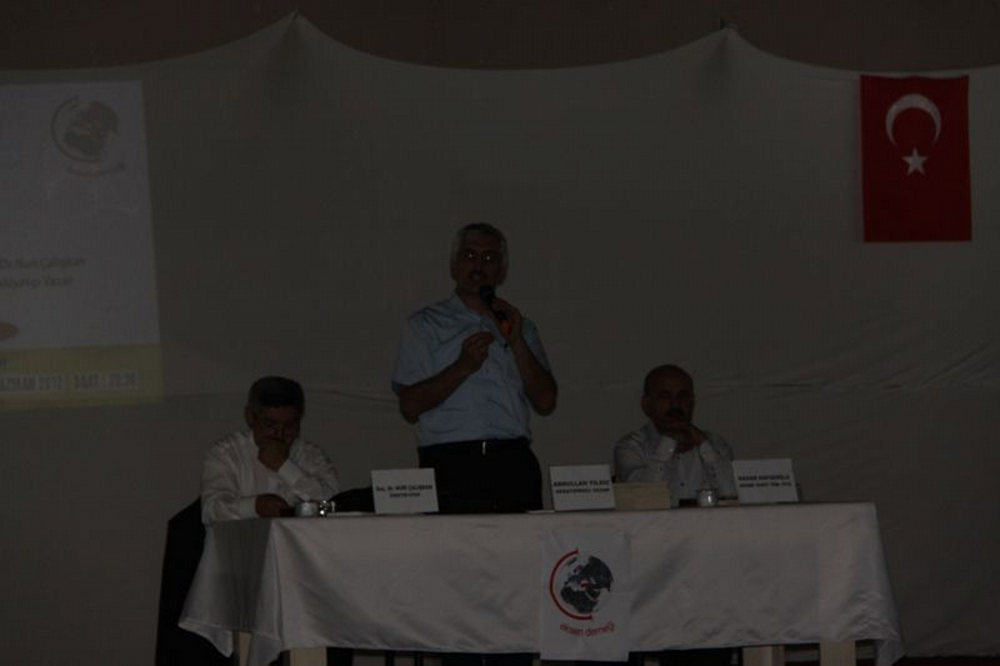 İkinci olarak söz alan Doç. Dr. Nuri Çalışkan namazın insanın doğumunda ölümüne kadar olan bir kulluk olduğunu söyledi ve sözlerine şöyle devam etti. “Namaza engel olan bütün güçler Ebu Cehilliktir. Sosyal statüye ve zenginliğe rağmen cimrilik göstermek Ebu Lehebliktir. Mala ve makama takılıp namaz kılmamak Ebu Lehebliktir.