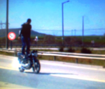 Motosikletli gençler TEM otoyolunda Motosikletleriyle çeşitli akrobasi hareketleri yaparak adeta ölümle dans ediyorlar.